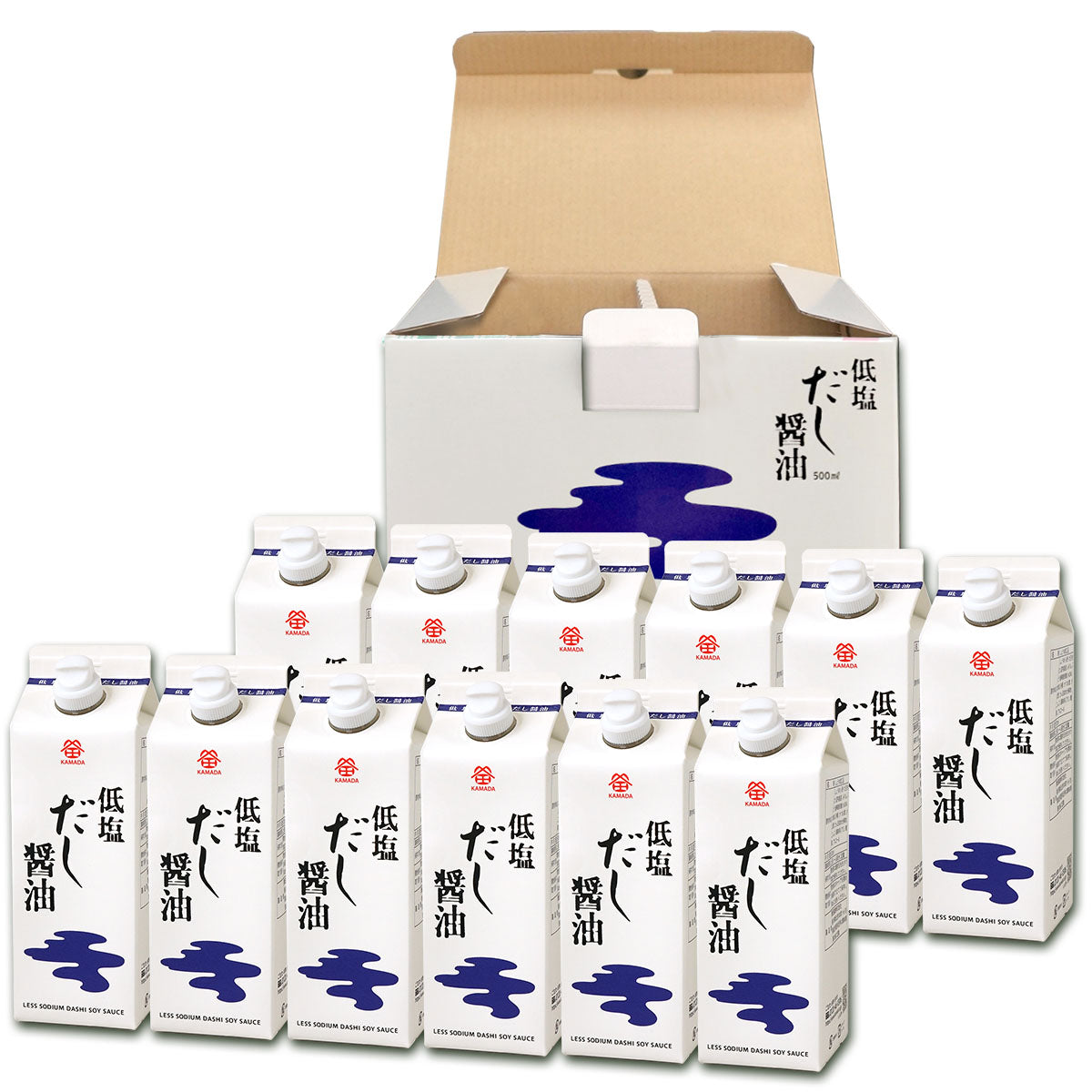 【人気の低塩だし醤油に待望の500mlタイプが新発売!】鎌田のだし醤油の美味しさはそのままに、塩分だけをぐっと減らしました!高齢化時代に向け、特に減塩に気を使われるご家庭はこちらをお試しください。醤油の香気と豊かな天然材料だしの美味とが一体となって、「減塩」につきものの物足りなさを全く感じさせません。そのままかけ醤油や煮物のだしとして、2〜3倍にうすめて天つゆやめんつゆとして、5〜6倍にうすめてかけつゆやお吸い物としてお使いください。その上、とても使いやすいワンタッチ口栓付紙パック入りです。 // 鎌田醤油 カマダ 醤油 母の日 お中元 ギフト 内祝い 敬老の日 お歳暮※他商品と同梱した場合、ギフトを除いて外箱無しのことがあります。
